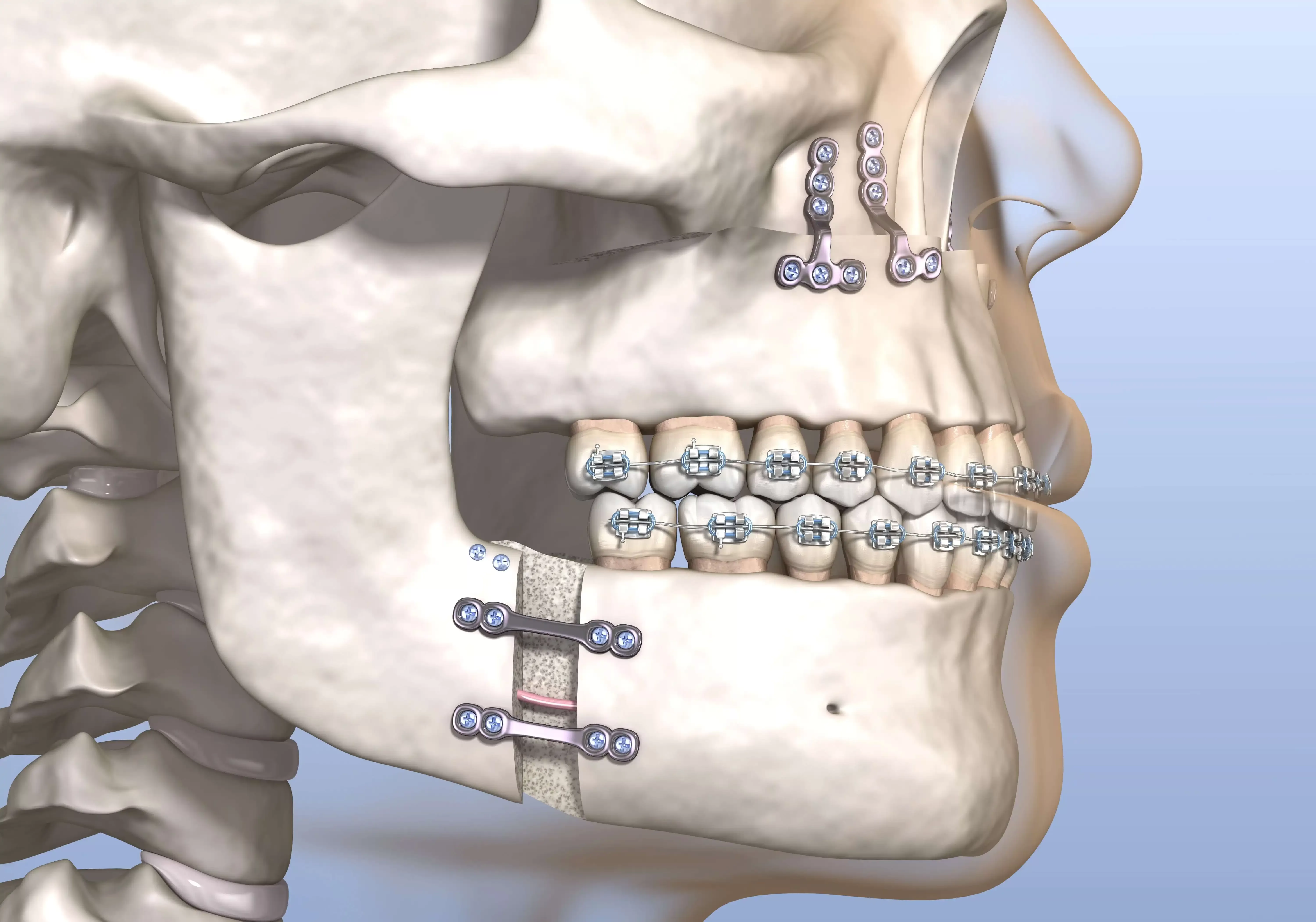- Nutnost kombinace s ortodontickou léčbou – pacienti obvykle nosí fixní rovnátka před operací i po ní, což prodlužuje celkovou dobu léčby.
